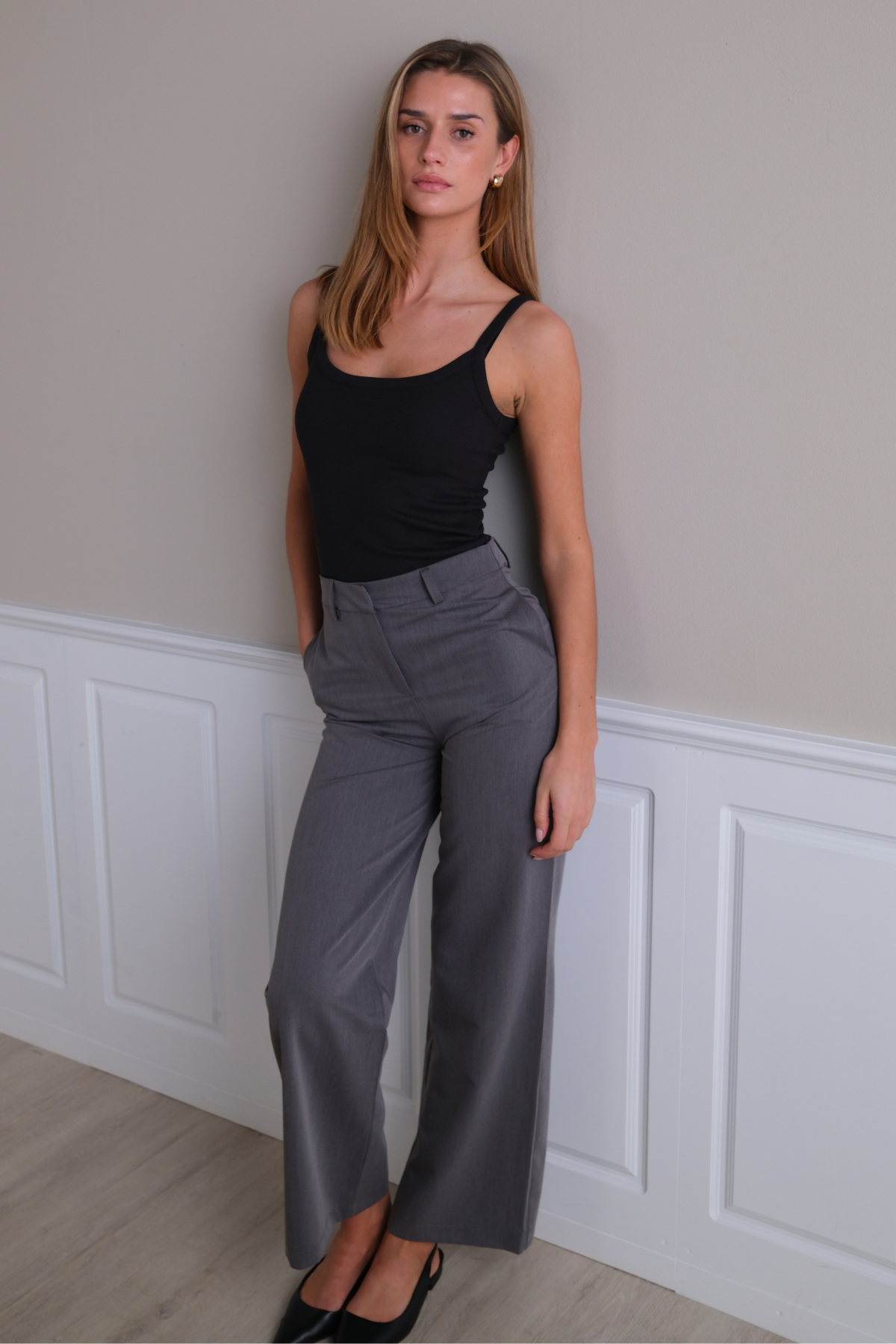 Entra en un mundo donde la comodidad y la alta costura coexisten maravillosamente con Rosalie Wide-Leg. Pants de TeeShoppen. Diseñados para la mujer moderna que lleva una vida ocupada pero se niega a comprometer el estilo, estos pants son más que una simple prenda de vestir: son la base de un guardarropa elegante, versátil y seguro. En un sofisticado tono gris, el Rosalie pants son la respuesta a innumerables momentos de qué ponerse, pasando sin esfuerzo de un look profesional de día a un elegante conjunto de noche.
